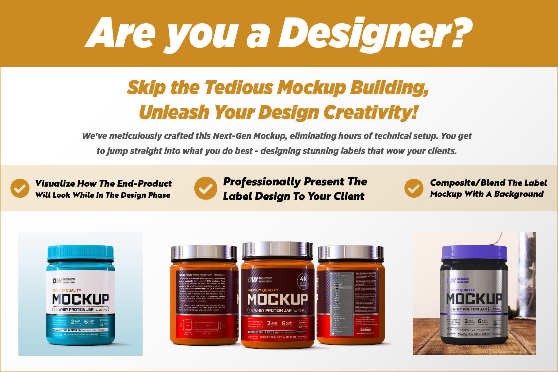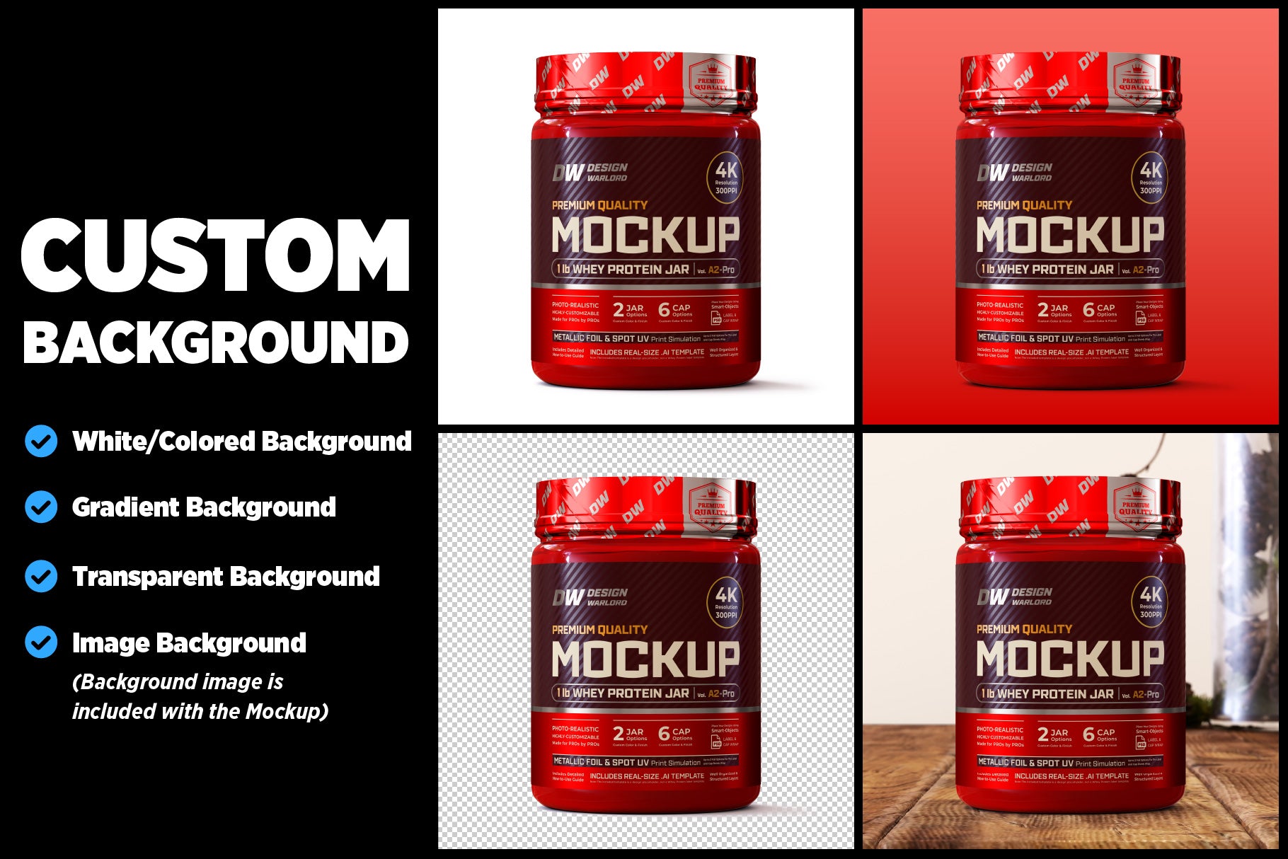 See if our Mockups are right for you with a free download of our Next-Gen Mockup for 1 lb Whey Protein Jar. Experiment with it, see how it elevates your product presentation, and discover the quality we offer across our entire range.