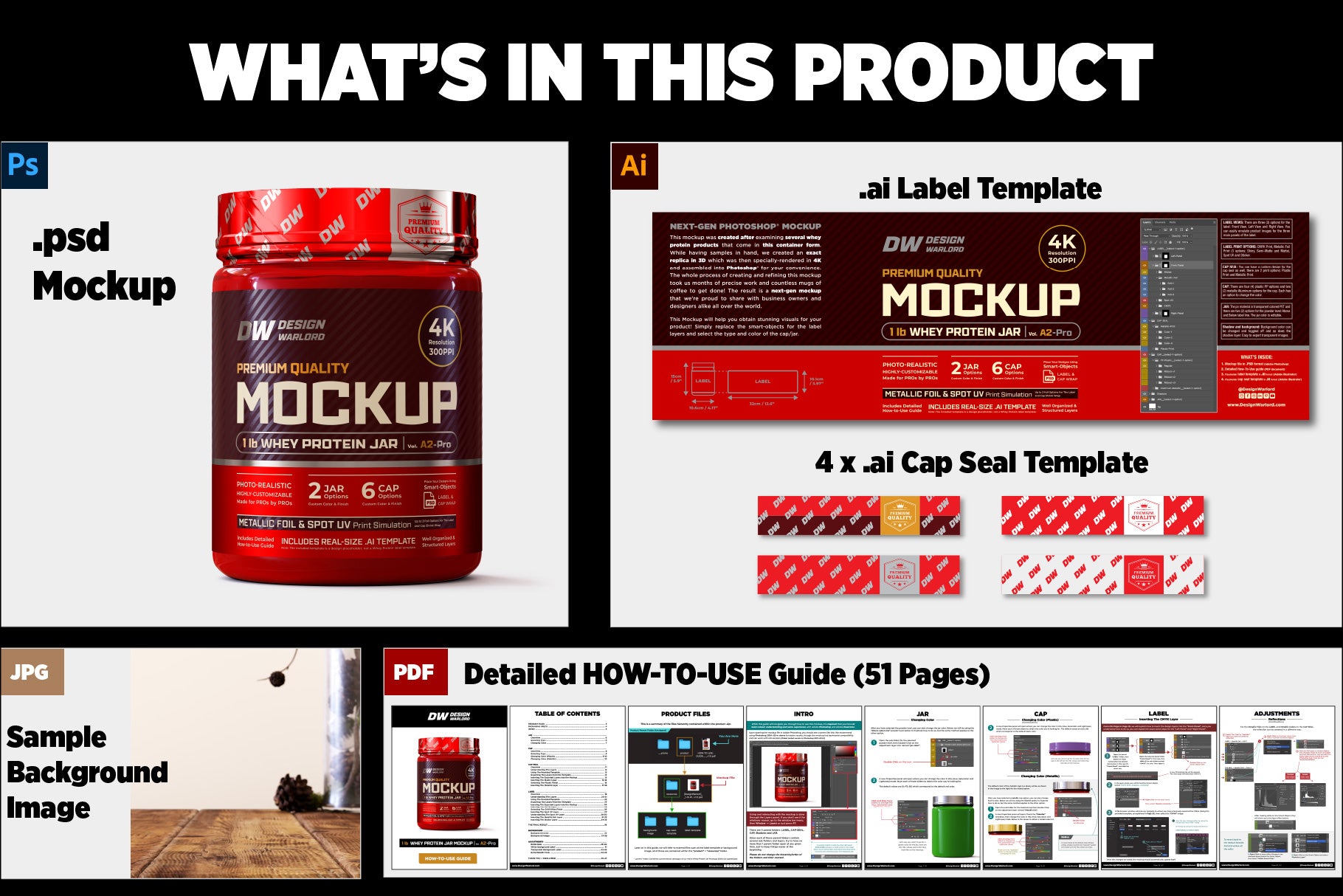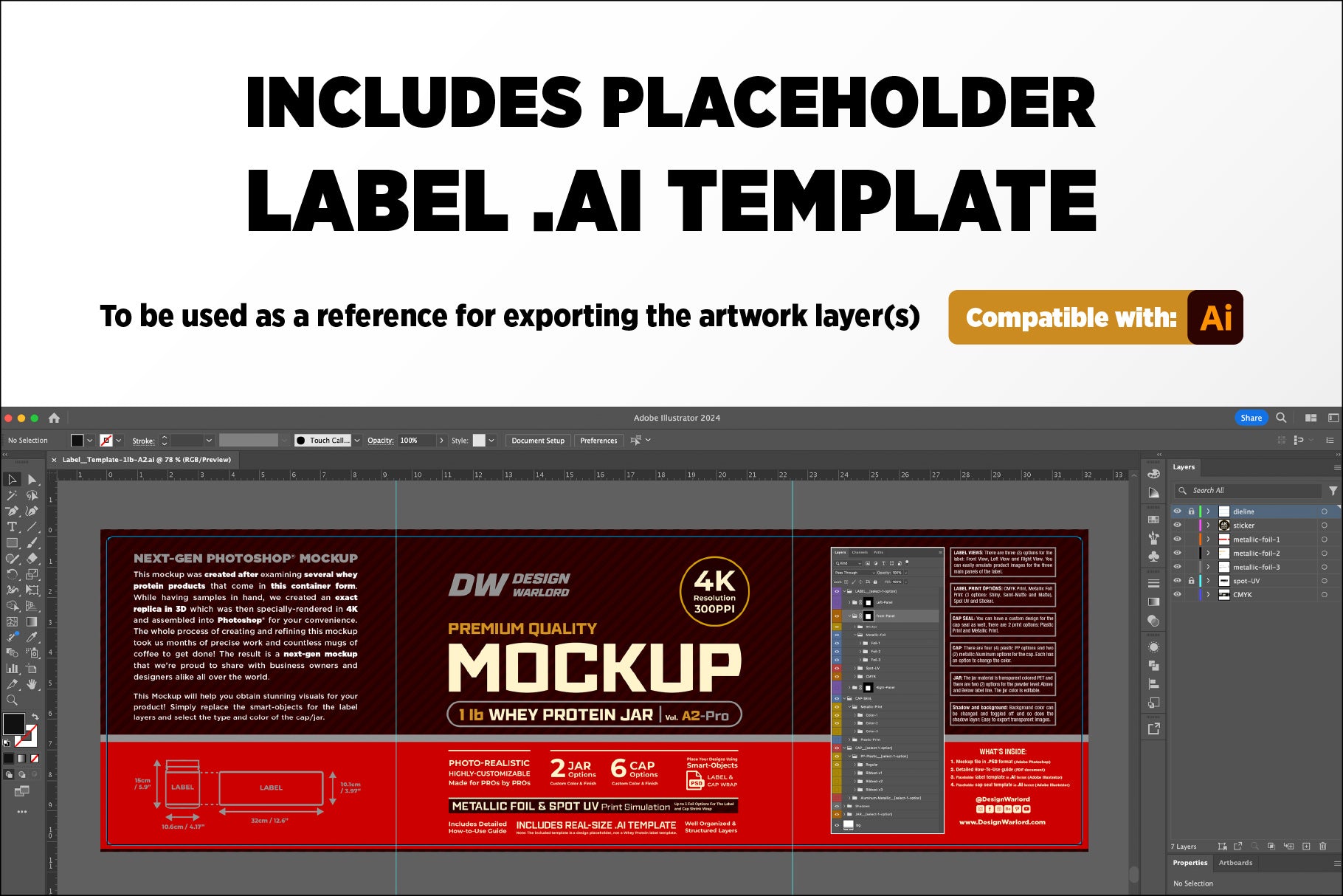 - Comes with a real-life size placeholder cap seal & label template in .ai format