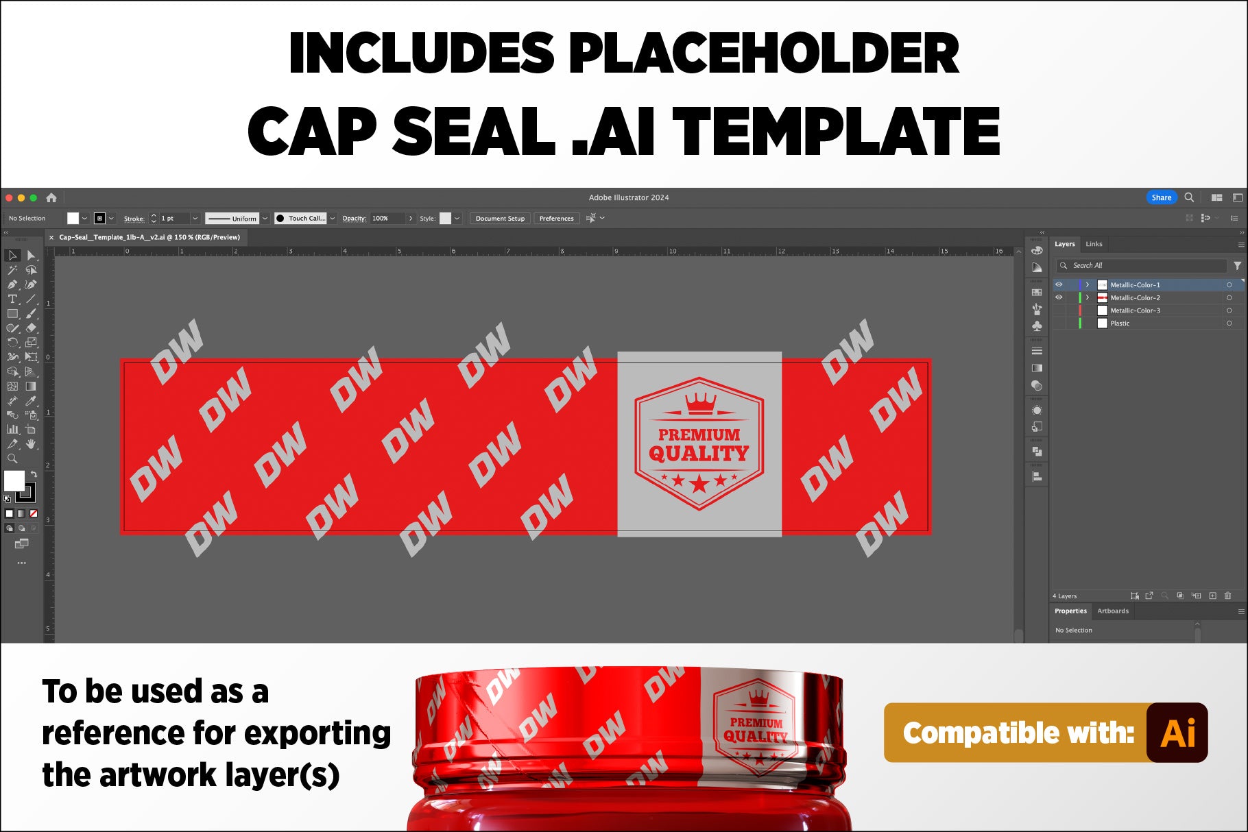 - 4 Design variations of the Cap Seal Template, in .ai format (Compatible with Adobe Illustrator®)
