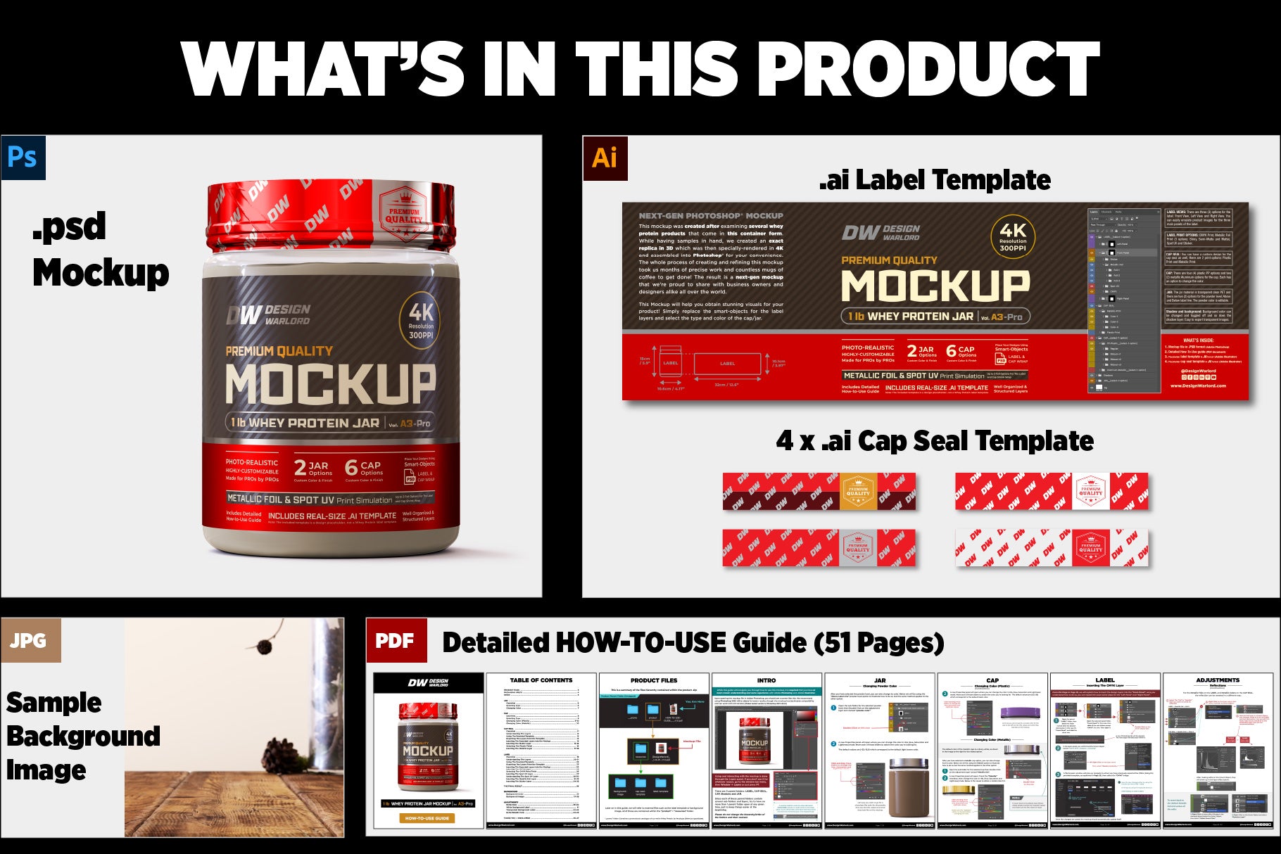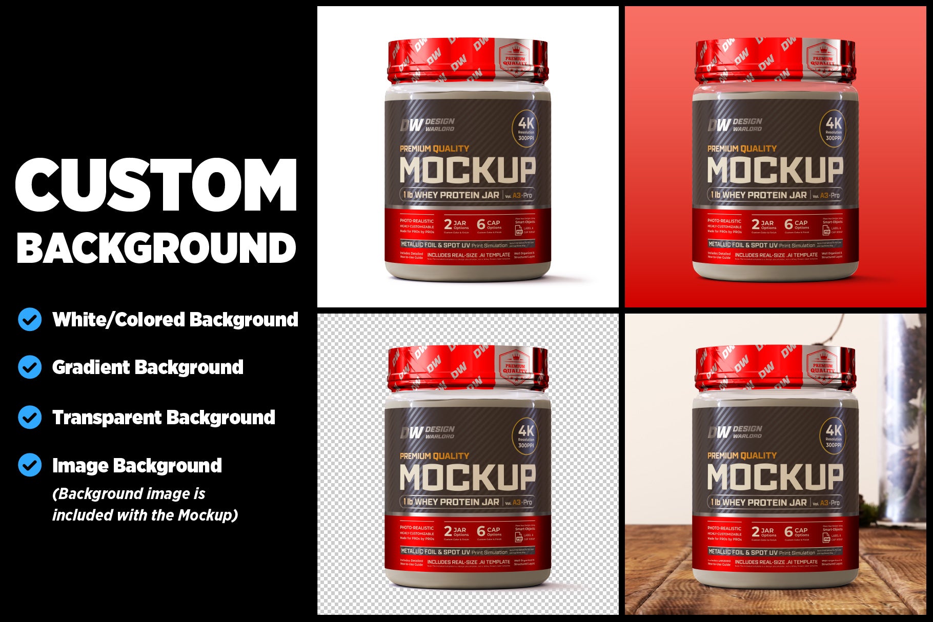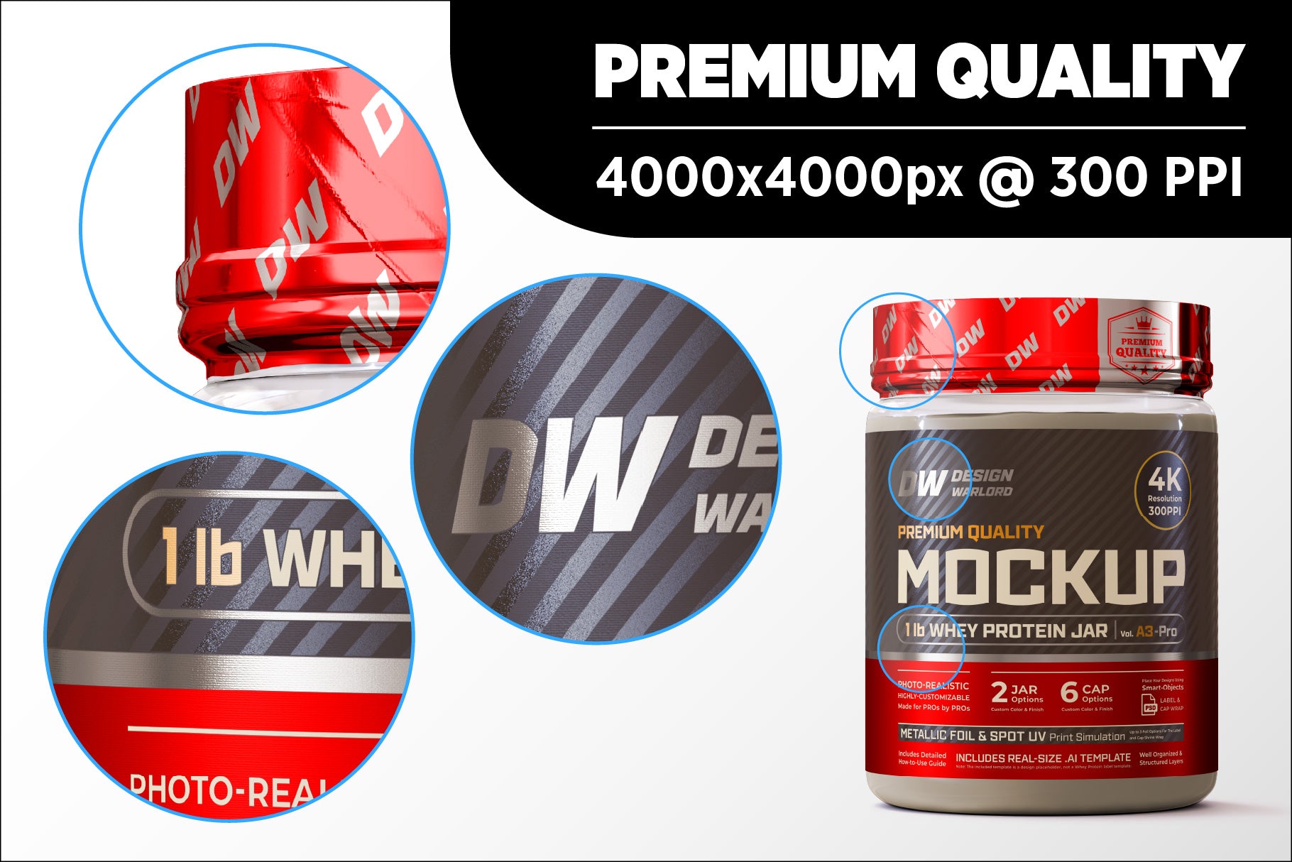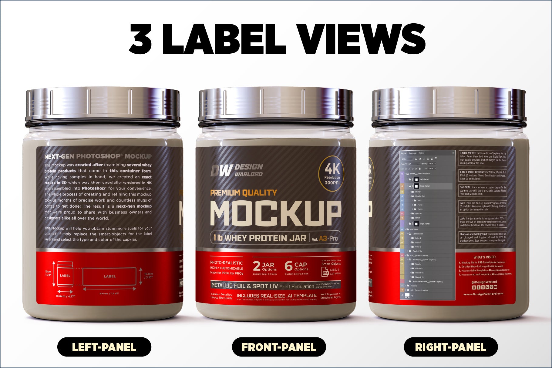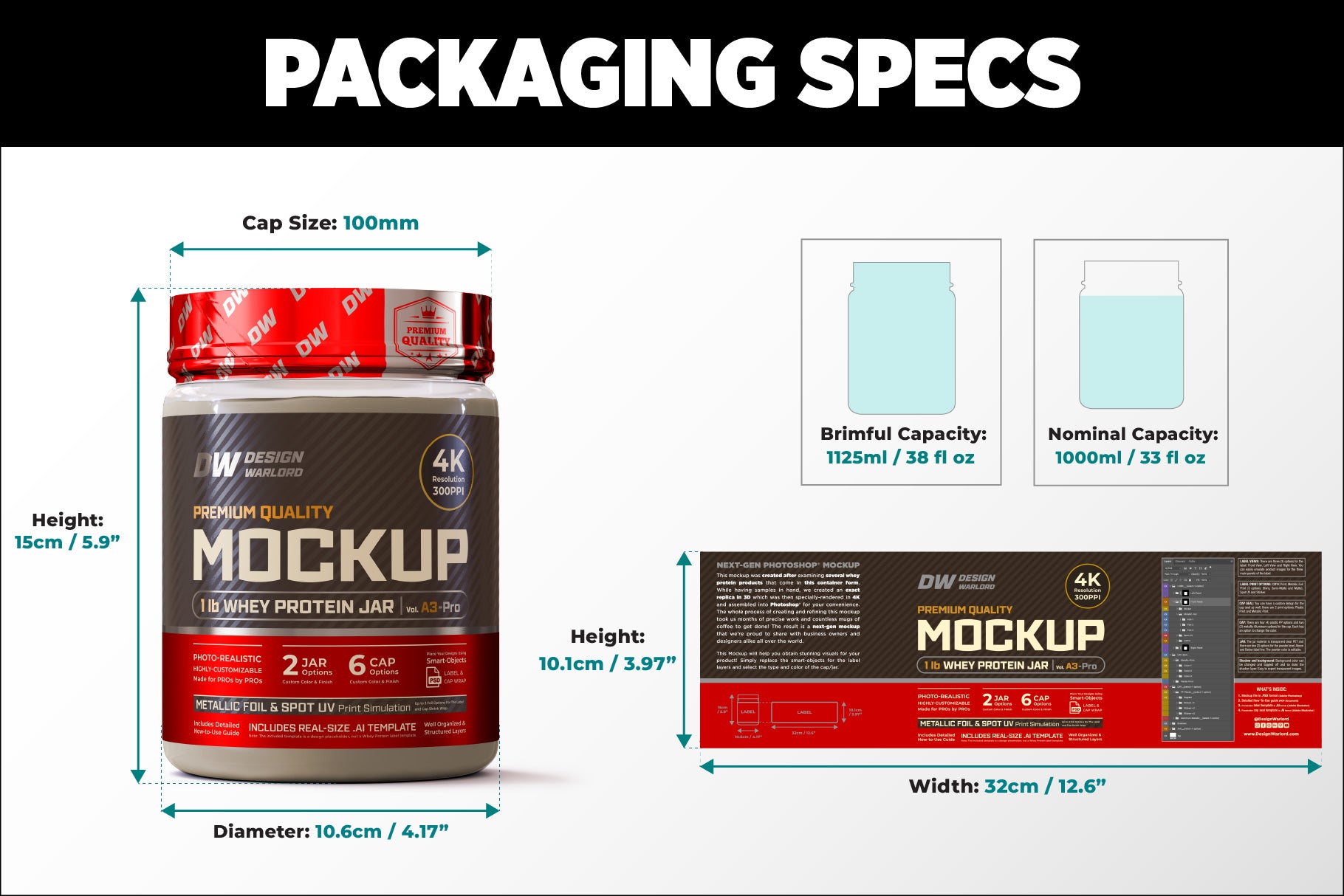 Design Warlord - 1 lb Whey Protein Jar Mockup vol. A1-Pro - Packaging Specifications