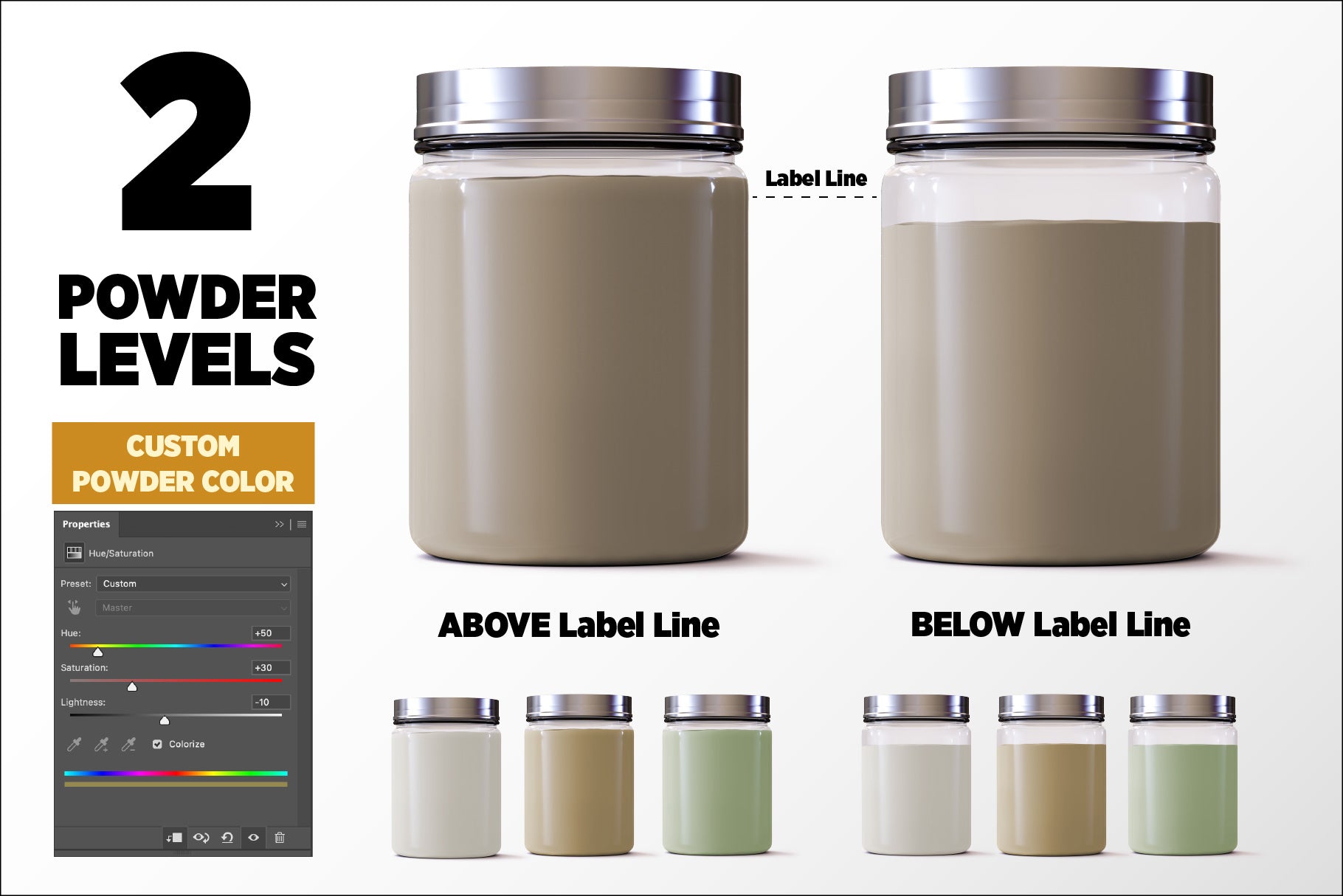 This mockup mirrors the exact size and shape of this standard protein jar: