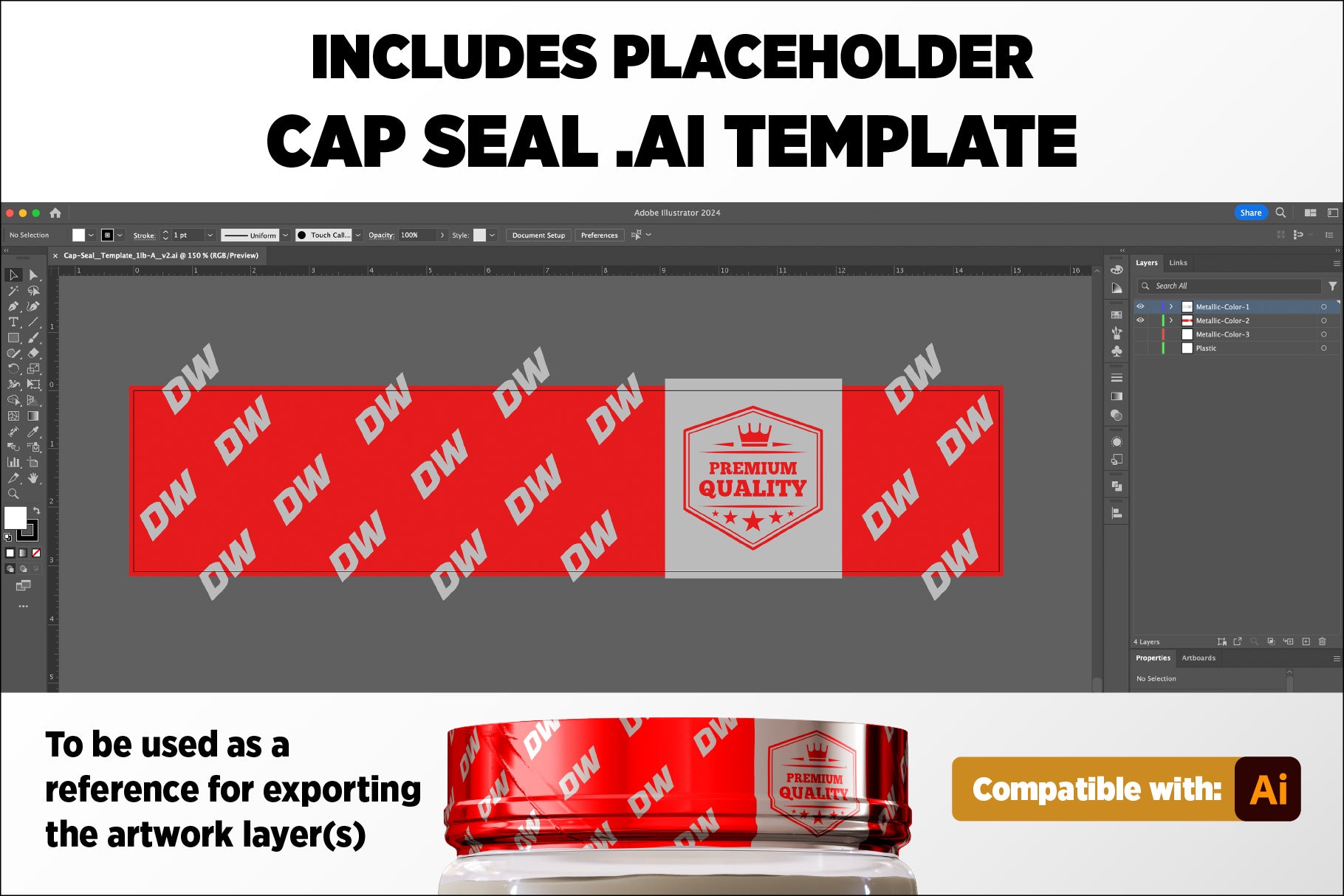 • 4 Design variations of the Cap Seal Template, in .ai format (Compatible with Adobe Illustrator®)