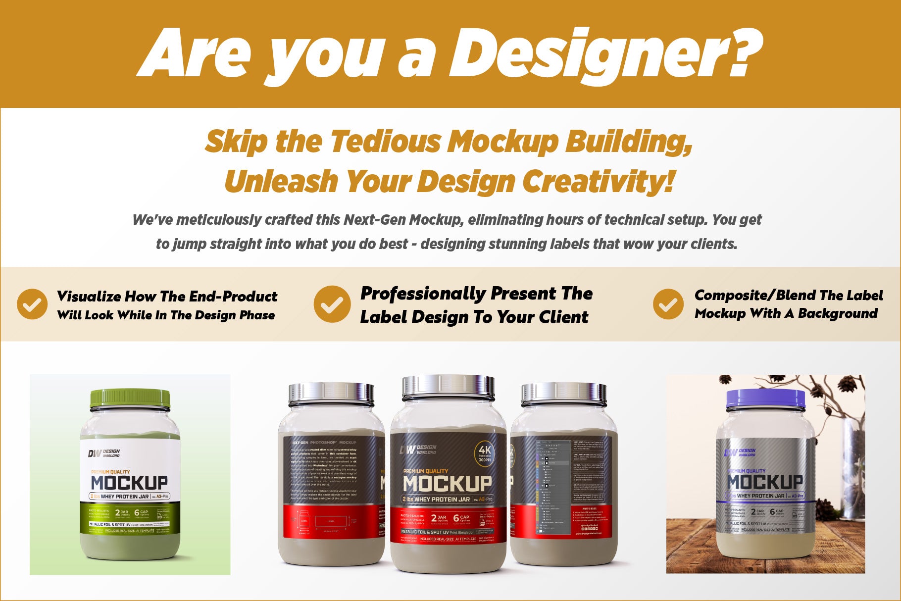 Not the jar size/material you're looking for? We have 23 other Next-Gen Protein Jar Mockups, explore our entire collection!