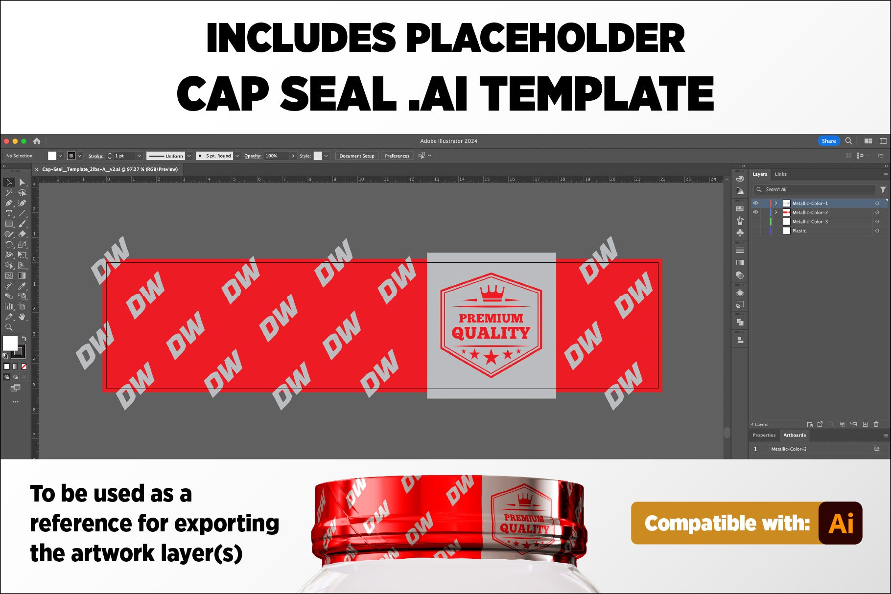 - 4 Design variations of the Cap Seal Template, in .ai format (Compatible with Adobe Illustrator®)