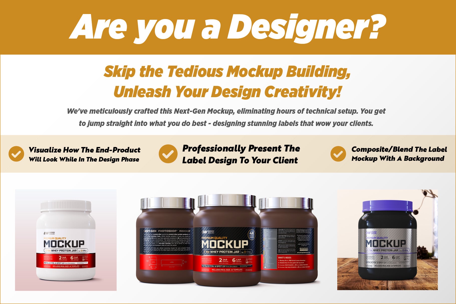 Not the jar size/material you're looking for? We have 23 other Next-Gen Protein Jar Mockups, explore our entire collection!