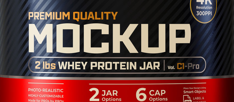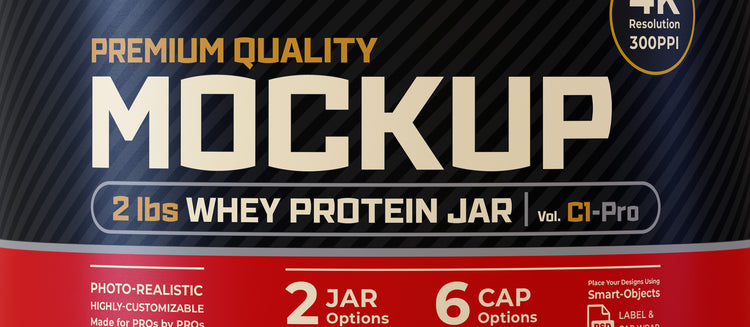 See if our Mockups are right for you with a free download of our Next-Gen Mockup for 1 lb Whey Protein Jar. Experiment with it, see how it elevates your product presentation, and discover the quality we offer across our entire range.