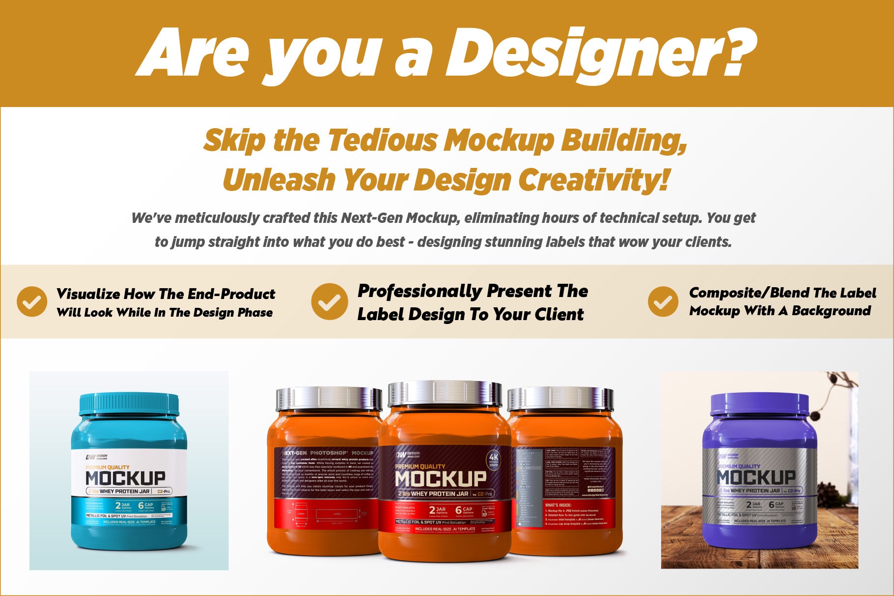 Not the jar size/material you're looking for? We have 23 other Next-Gen Protein Jar Mockups, explore our entire collection!