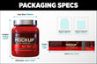This mockup mirrors the exact size and shape of this standard protein jar: