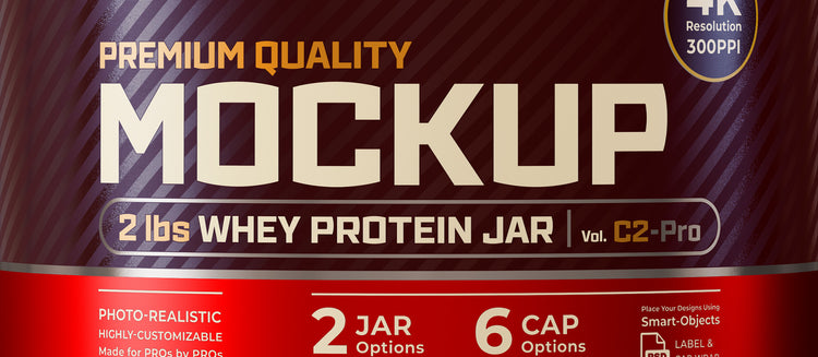 See if our Mockups are right for you with a free download of our Next-Gen Mockup for 1 lb Whey Protein Jar. Experiment with it, see how it elevates your product presentation, and discover the quality we offer across our entire range.