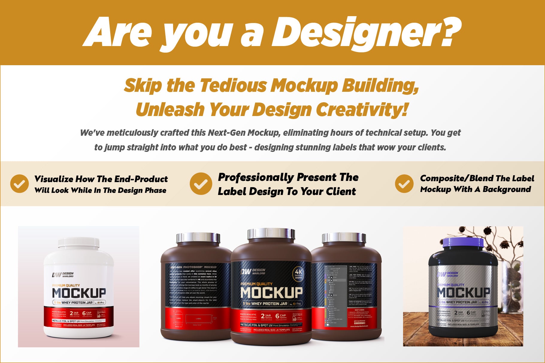 See if our Mockups are right for you with a free download of our Next-Gen Mockup for 1 lb Whey Protein Jar. Experiment with it, see how it elevates your product presentation, and discover the quality we offer across our entire range.