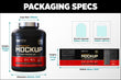 This mockup mirrors the exact size and shape of this standard protein jar: