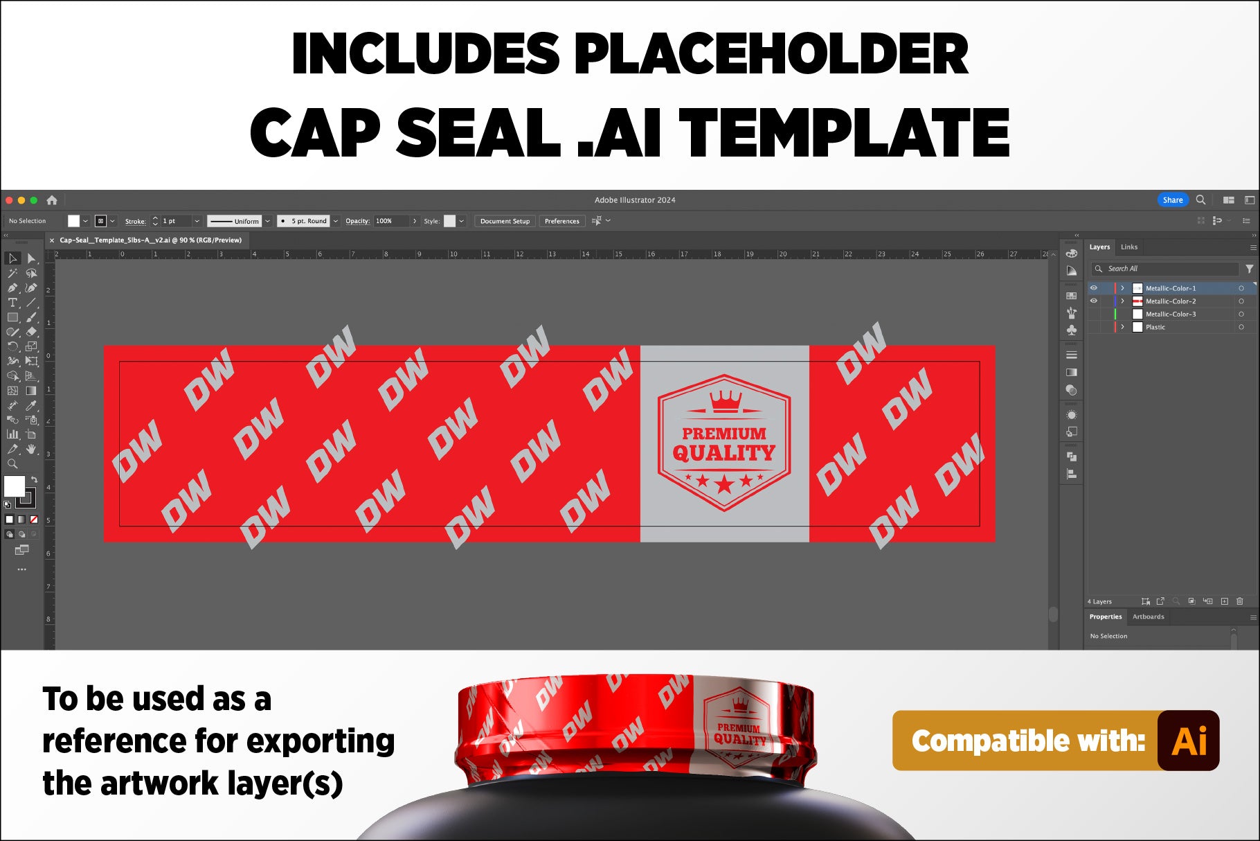 - 4 Design variations of the Cap Seal Template, in .ai format (Compatible with Adobe Illustrator®)
