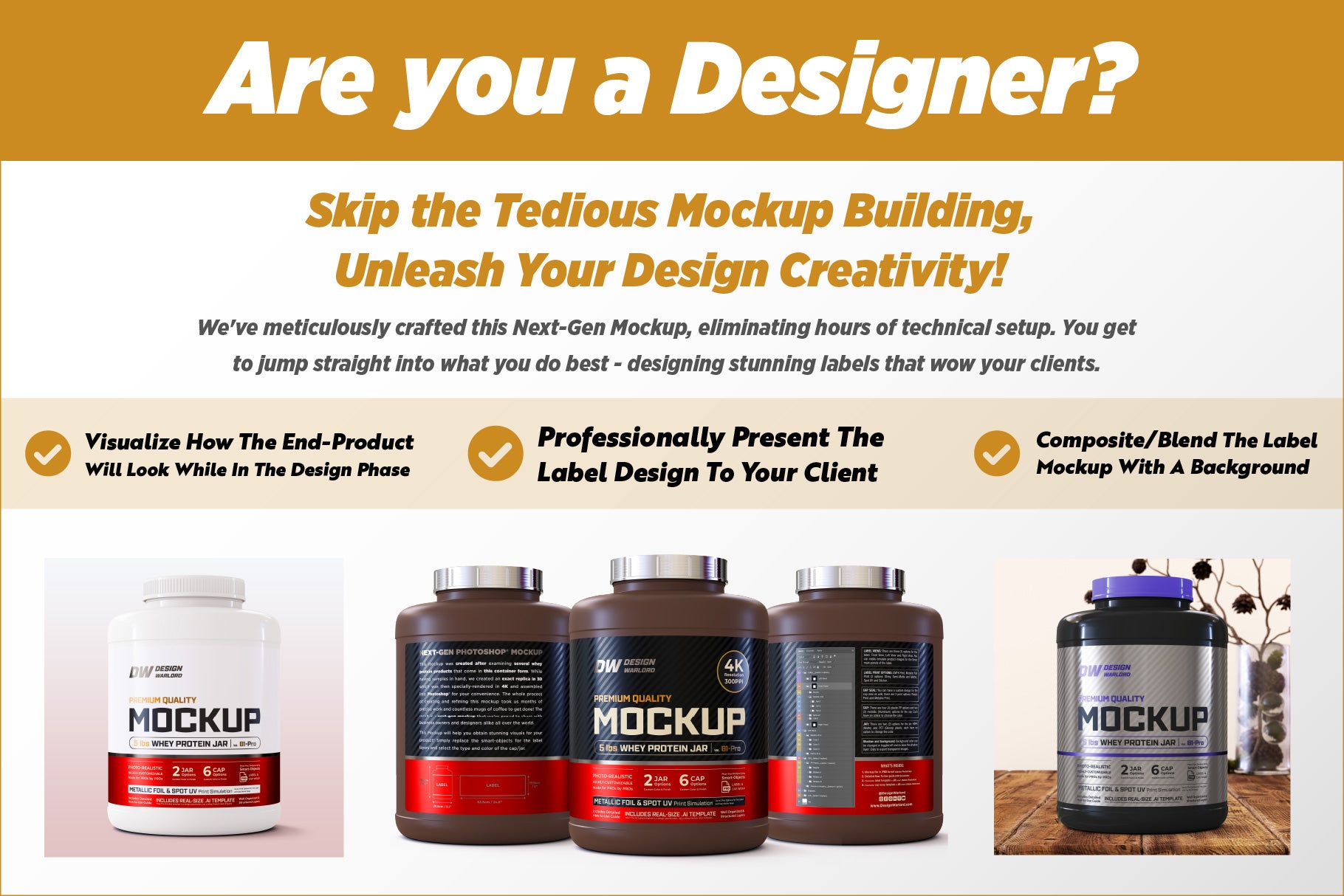 Not the jar size/material you're looking for? We have 23 other Next-Gen Protein Jar Mockups, explore our entire collection!
