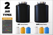 - 2 jar materials: Opaque HDPE (Matte) and PET (Glossy/Shiny) plastic