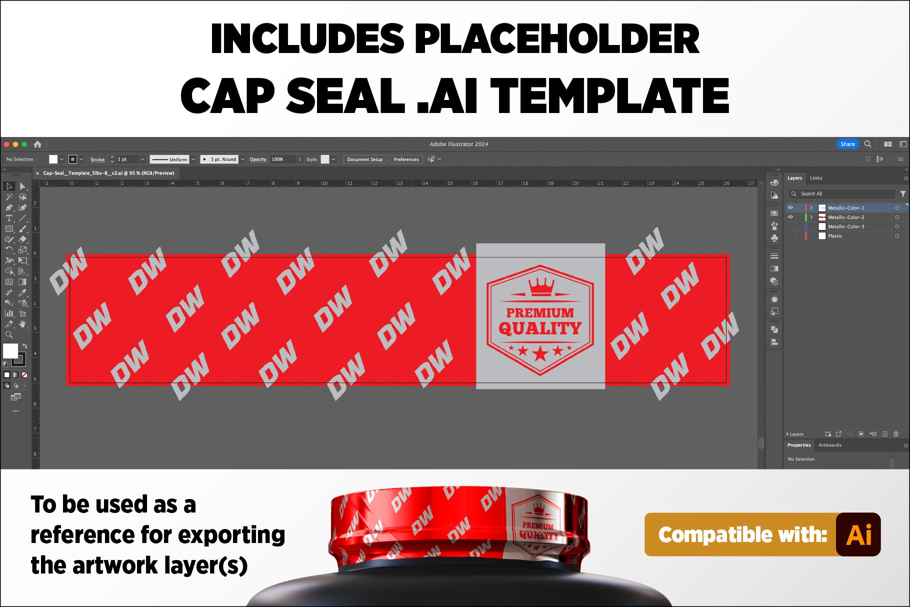 - 4 Design variations of the Cap Seal Template, in .ai format (Compatible with Adobe Illustrator®)